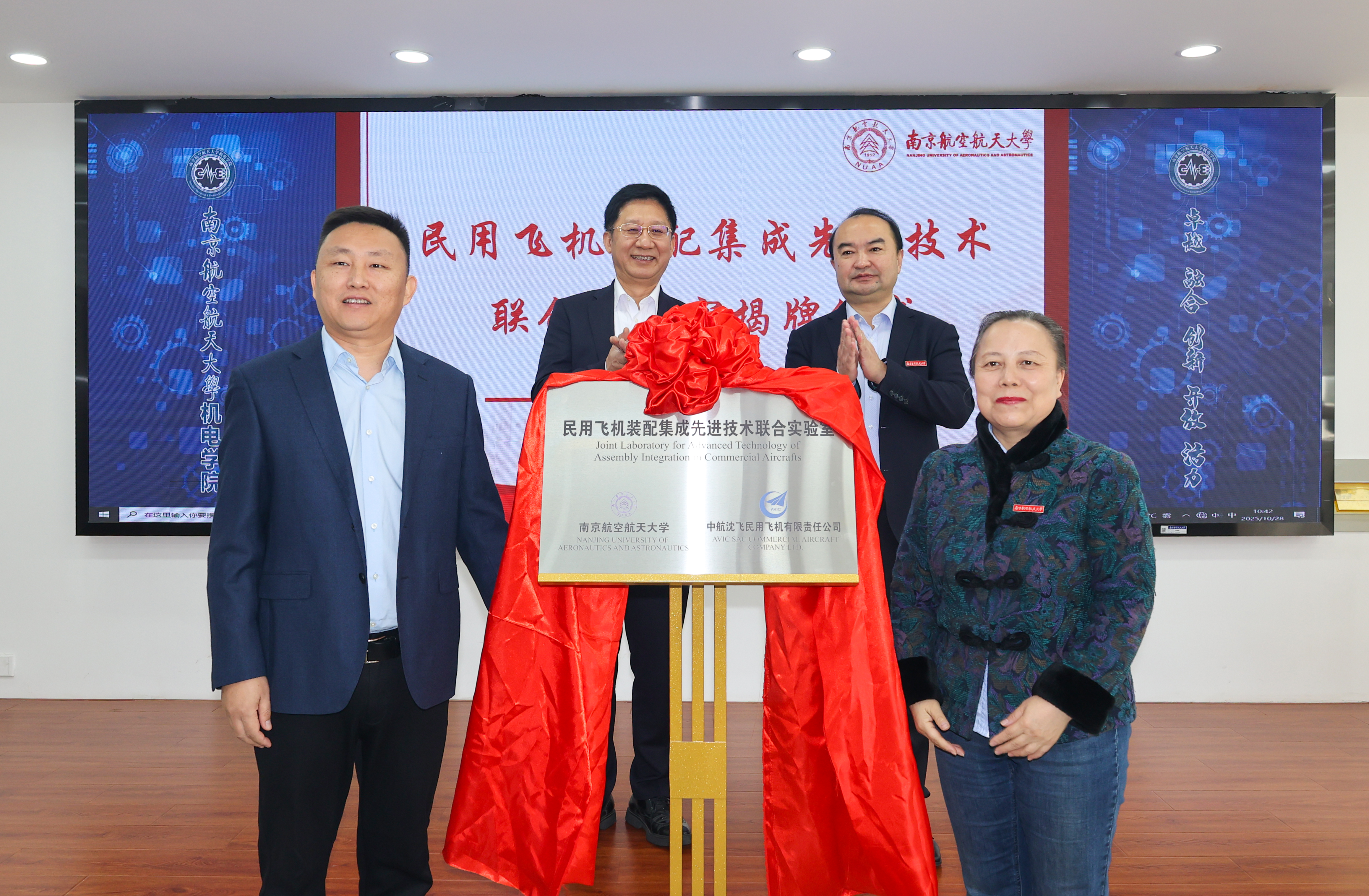 随后,我校与沈飞民机代表共同为“民用飞机装配集成先进技术联合实验室”揭牌。