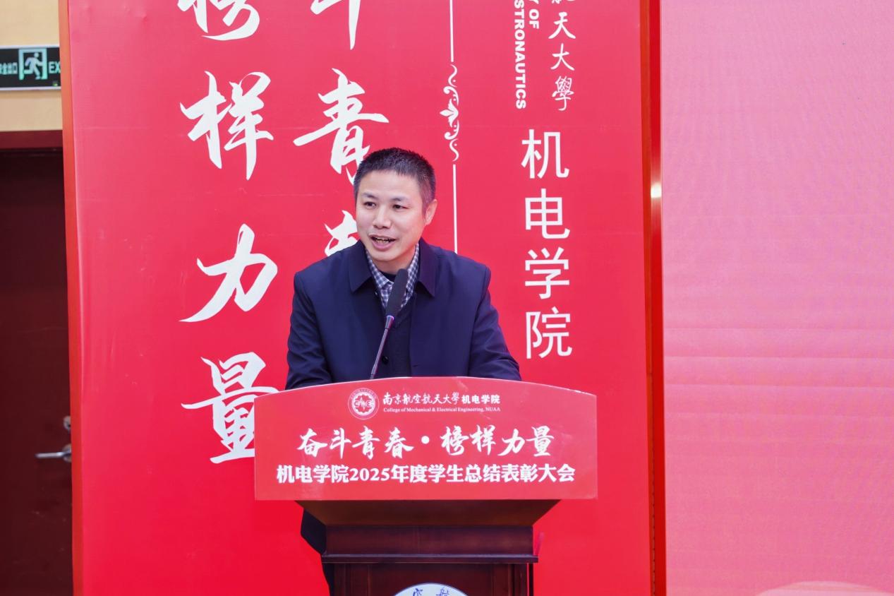 大会最后,ob体育 党委书记刘虎作总结讲话。他代表学院向获奖集体与个人表示祝贺,向设奖单位及校友表示感谢。刘虎书记指出,本次大会既是一次榜样事迹分享会,也是一堂生动的思政公开课。他勉励全体机电学子要铸牢信仰之基,将个人理想融入国家航空航天事业大局;要锤炼过硬本领,勇于攀登科技高峰,助推高水平科技自立自强;要永葆奋斗之姿,勇担时代重任,在推进强国建设、民族复兴的伟大实践中书写无愧于时代的青春篇章。