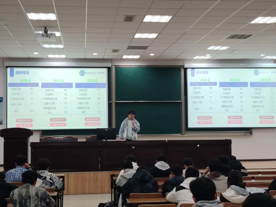 刘梦嘉开展了升学与就业意向的初步调研,鼓励同学们尽早明确个人发展方向,为接下来的努力找准坐标。并结合ob体育 往届毕业生的实际数据,系统梳理了保研、考研、国内就业、出国(境)深造以及参军入伍等多元化发展路径的具体情况与趋势。通过对历年去向的深度剖析,帮助大家拓宽视野,理性选择适合自身的奋斗赛道。在学情分析环节,就本年级的整体学风建设、阶段性学习成效与常见问题进行了通报与总结。他强调,扎实的专业基础是未来发展的根本,呼吁同学们珍惜时光、互帮互促,共同营造勤学、笃实的优良学风。